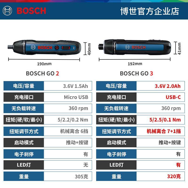 博世电动螺丝刀迷你充电起子机Bosch Go2代家用3.6v博士电批工具