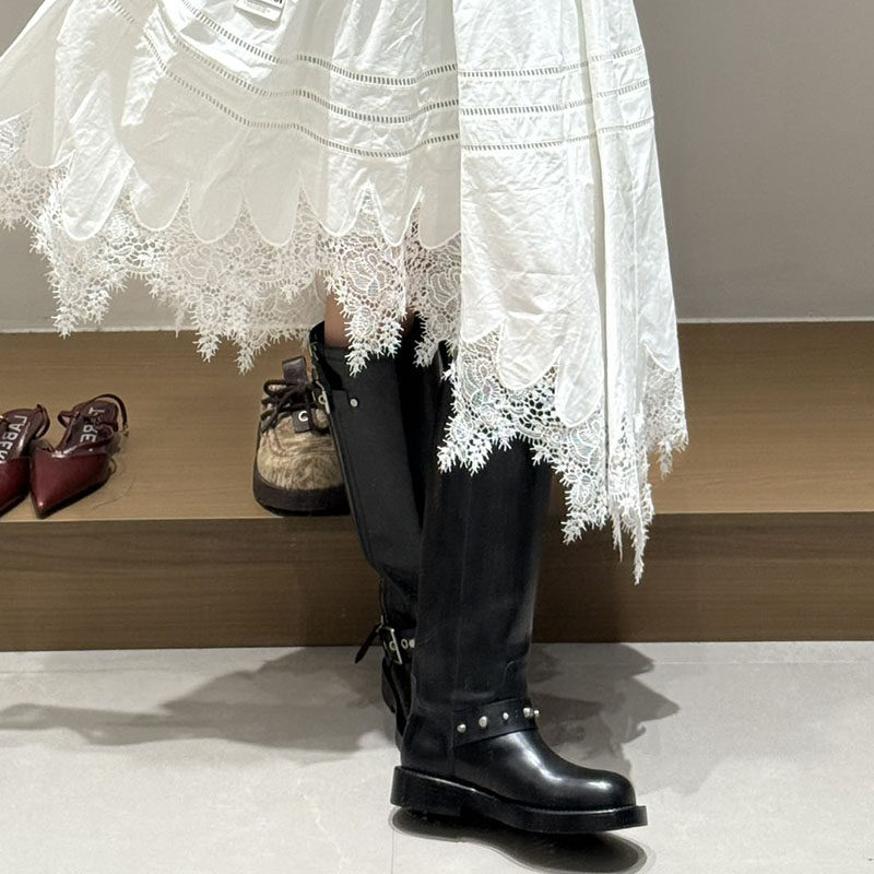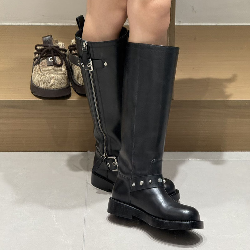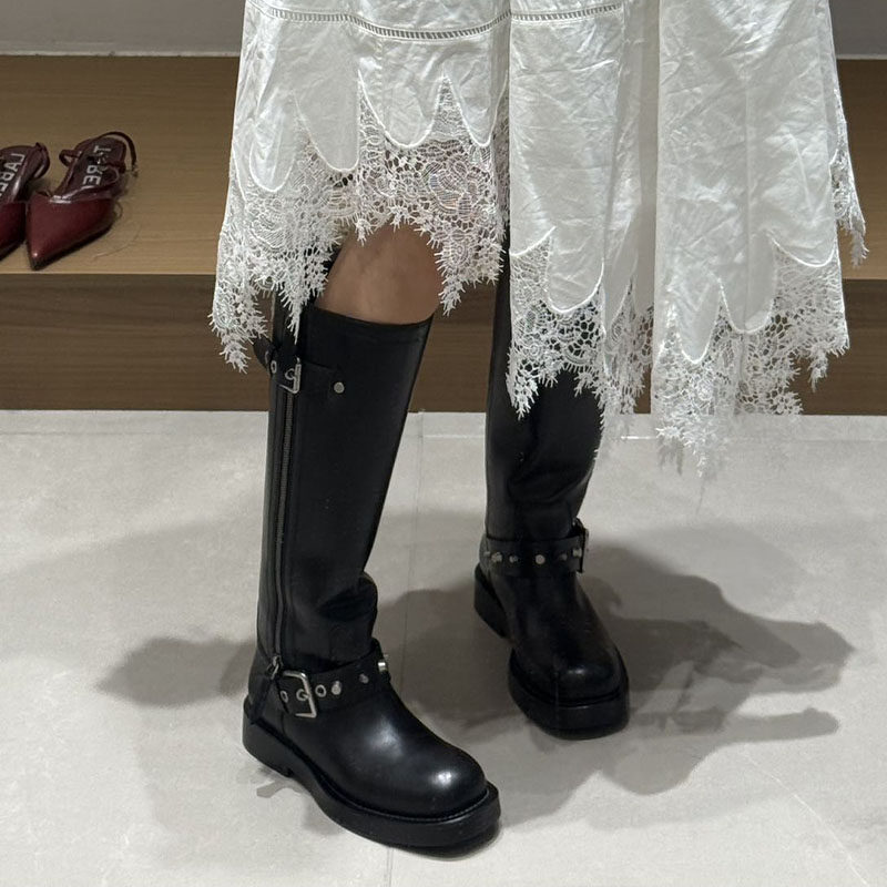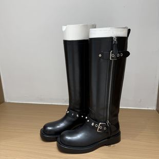 Fermina 显瘦长靴不过膝骑士靴女低跟长筒靴皮带扣机车靴高筒 秋季