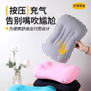 按压充气枕头飞机高铁长途坐车护腰靠垫户外旅行露营折叠便携枕头