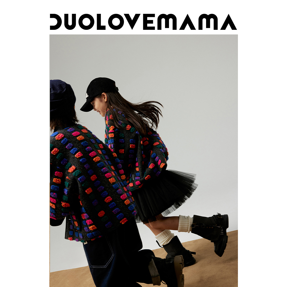 DUOLOVEMAMA 复古彩色颗粒绒儿童外套男女童节日感保暖百搭上衣