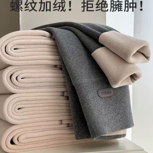 螺纹棉加厚羊羔绒女纯色无痕高腰保暖裤 新款 加绒外穿打底裤 冬季