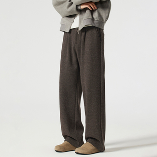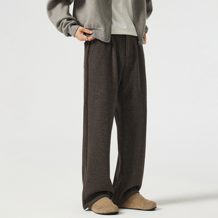 男加绒加厚宽松直筒老钱风休闲长裤 Kuvine冬季 慵懒松弛感羊毛西裤