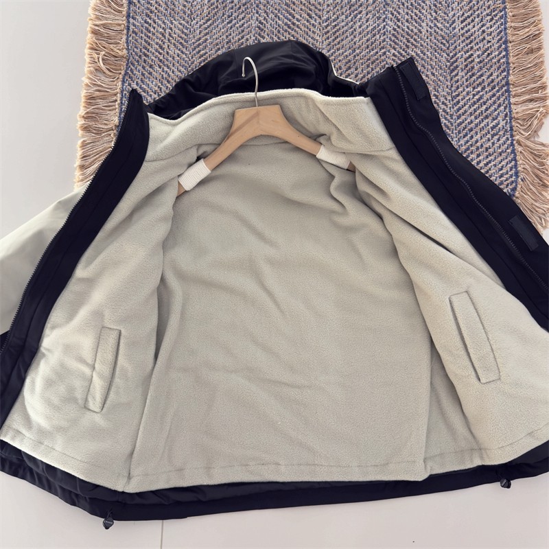 黑色休闲百搭连帽夹克上衣 胖mm双面穿毛绒棉服外套女冬季 大码 女装
