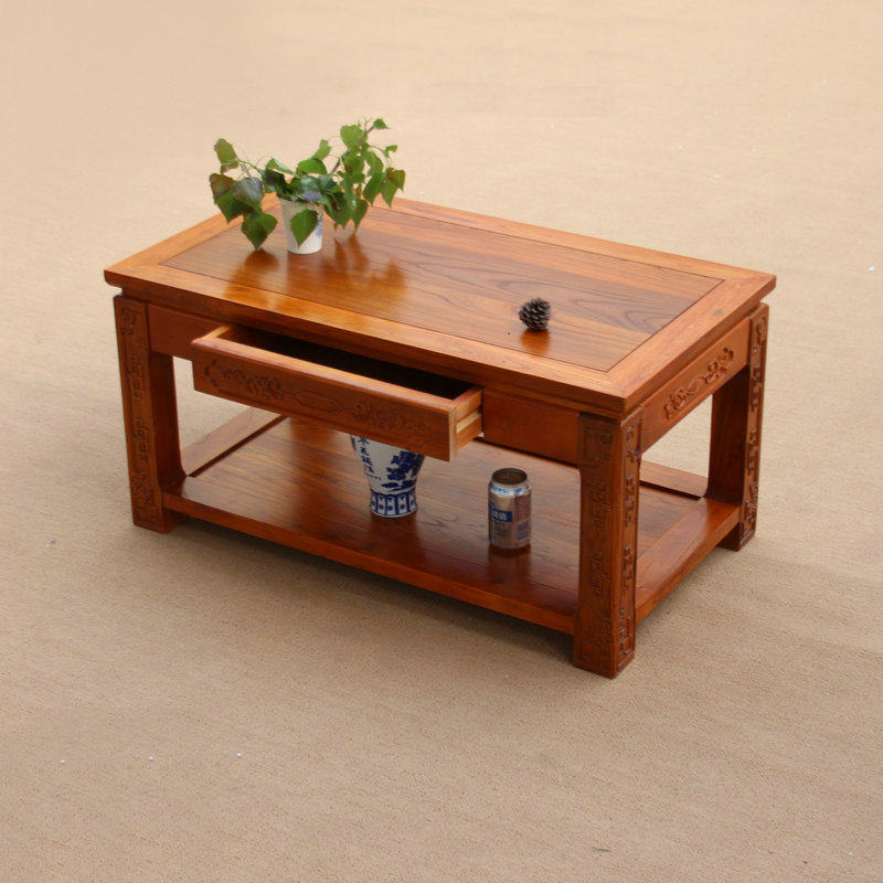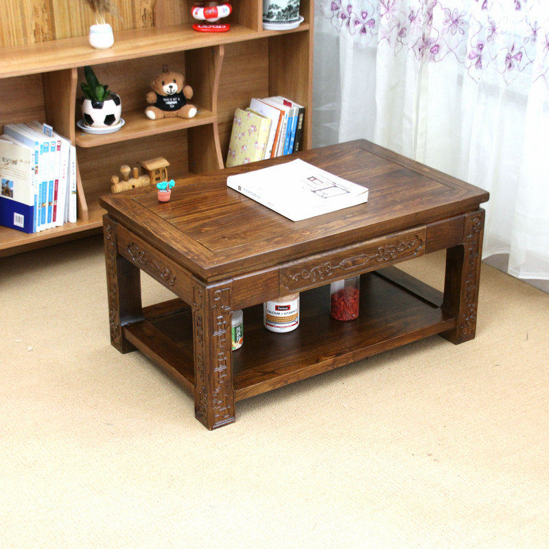 仿古榻榻米茶几实木飘窗桌炕桌老榆木茶桌客厅双层储物小桌子 包邮