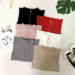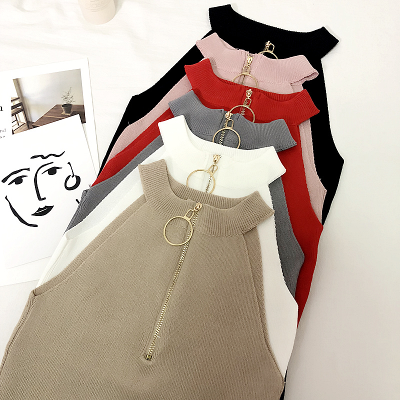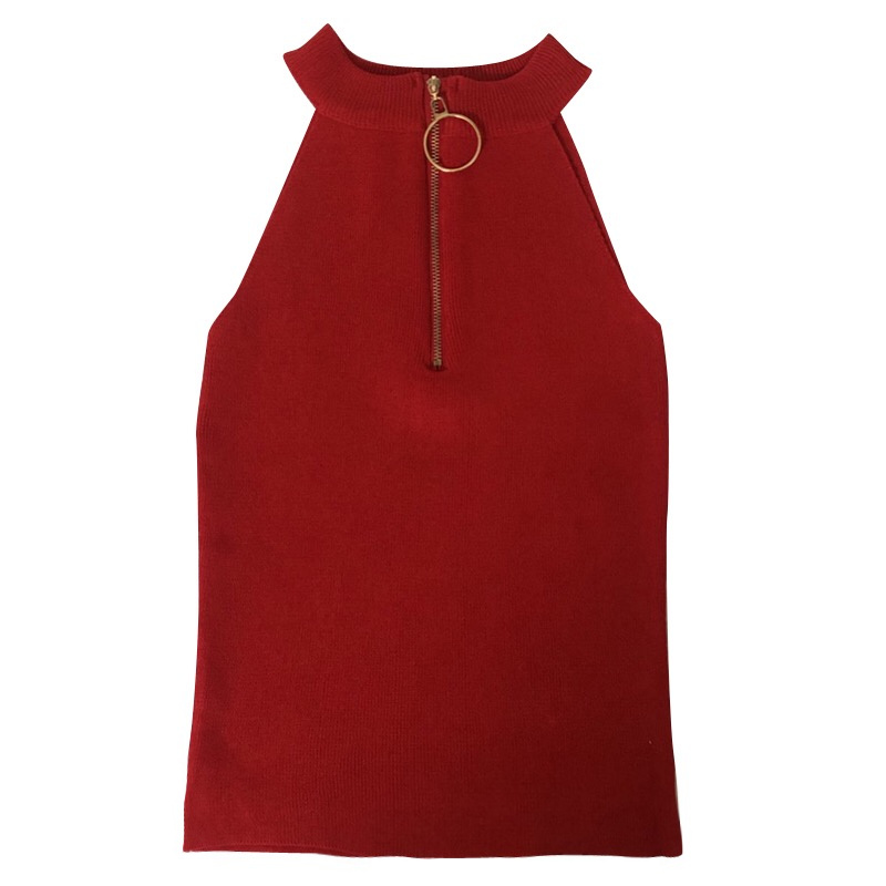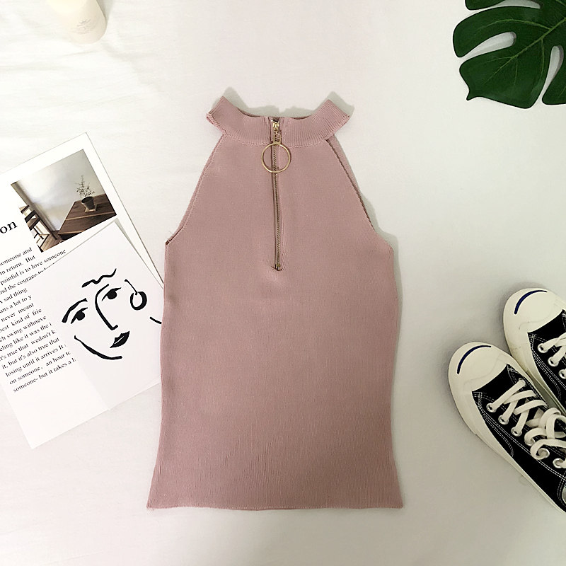 露肩背心女无袖 2019春夏新款 圆环拉链修身 chic风复古时尚 上衣 韩版