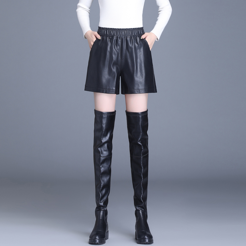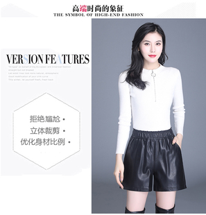 高腰阔腿显瘦百搭外穿绵羊皮靴裤 真皮皮裤 新款 2023春秋季 潮 女短裤