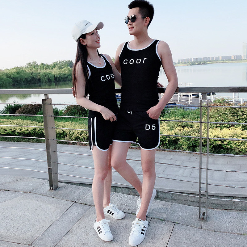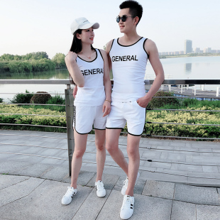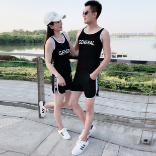 纯棉短袖 居家背心运动套装 T恤短裤 男士 休闲两件套ins韩版 情侣夏季