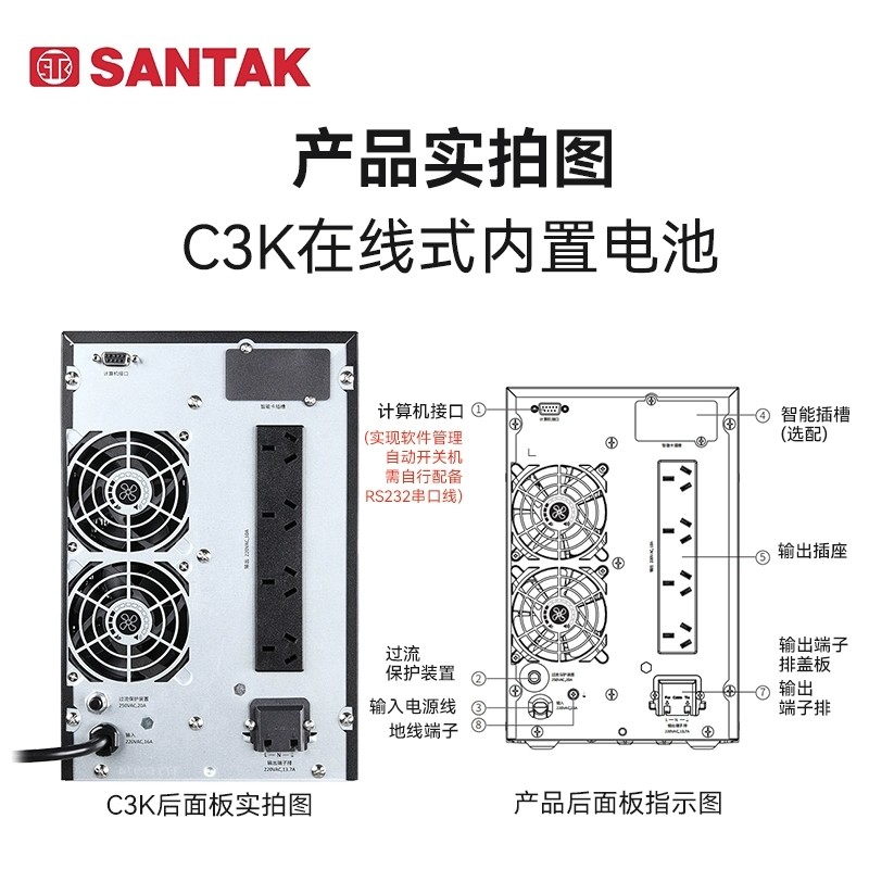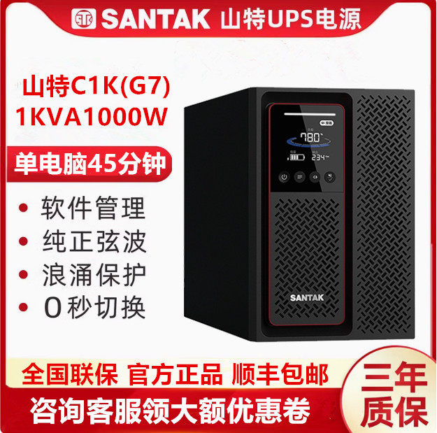 山特UPS不间断电源C2K 稳压后备电源2000W 2000VA电脑服务器在线式