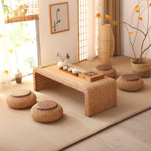 藤编榻榻米茶几阳台桌茶桌简约飘窗桌日式 矮桌家用地台组合小桌子