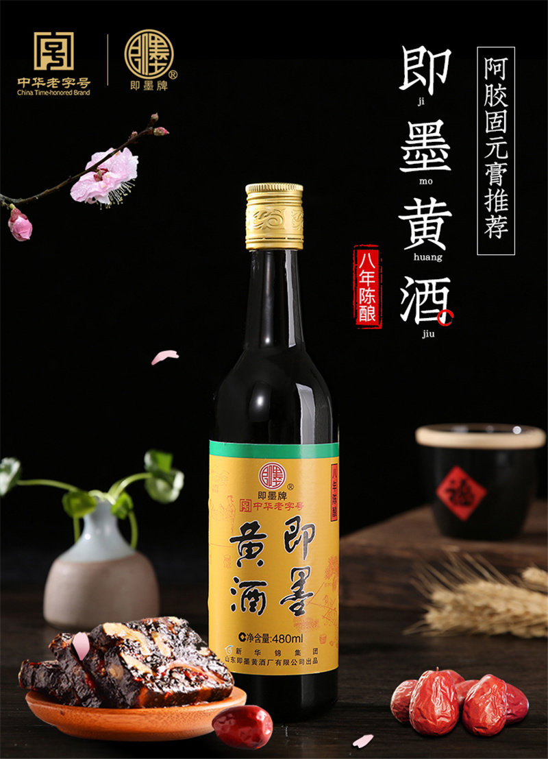即墨黄酒八年陈酿半甜型阿胶糕专用黍米黄酒即墨老酒瓶装 药引子酒