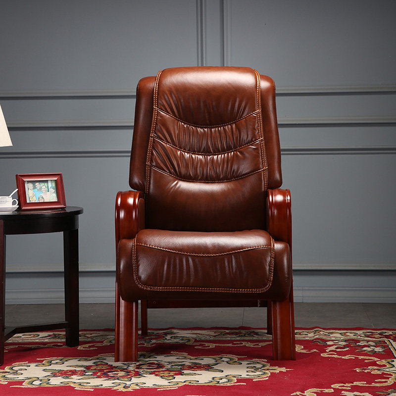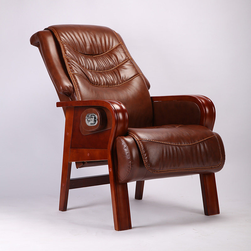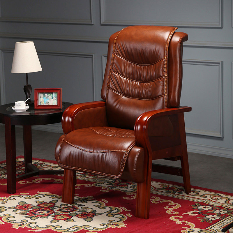 真皮老板椅子商务可躺办公椅实木四脚大班椅家用电脑椅舒适书房椅