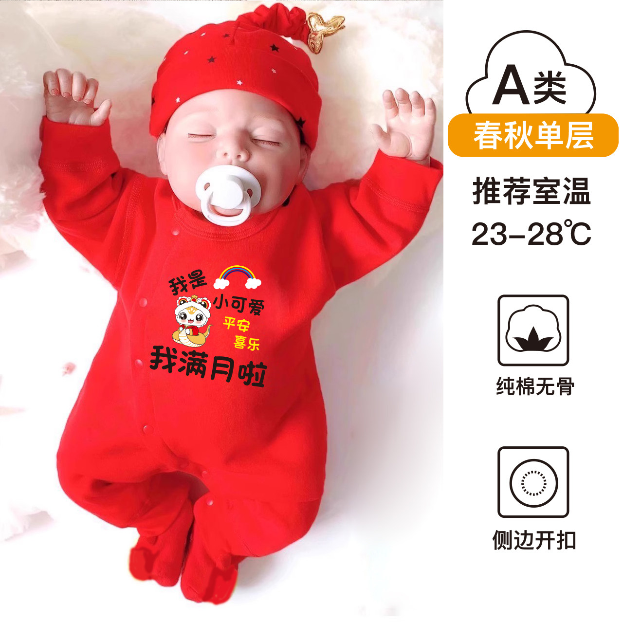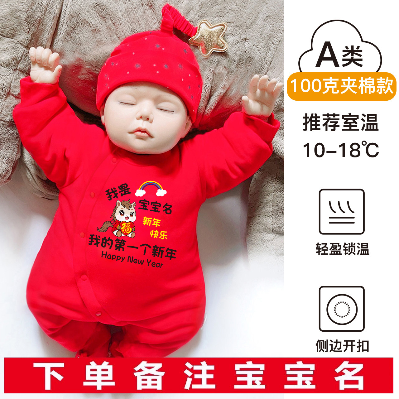 新生婴儿哈衣服男女蛇宝宝满月百天春秋连体衣拜年服秋冬薄棉加厚