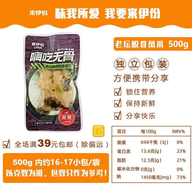 来伊份老坛酸菜脱骨凤爪500g柠檬山椒酸辣小吃鸡肉制品散装 来一份