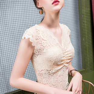 T恤无袖 2025秋季 网纱性感洋气女装 女v领修身 镂空背心 蕾丝打底衫