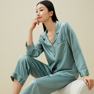 真丝睡衣女秋冬两件套100%桑蚕丝男金三塔情侣丝绸简约家居服套装