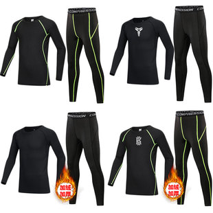 高弹训练打底裤 冬季 跑步健身服长袖 速干紧身衣男运动保暖内搭套装