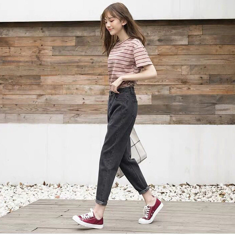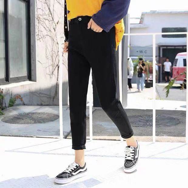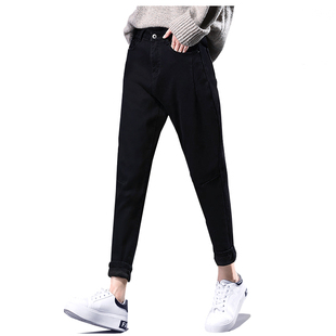 女微胖mm梨型身材遮肉显瘦九分哈伦裤 大码 高腰弹力小脚牛仔萝卜裤