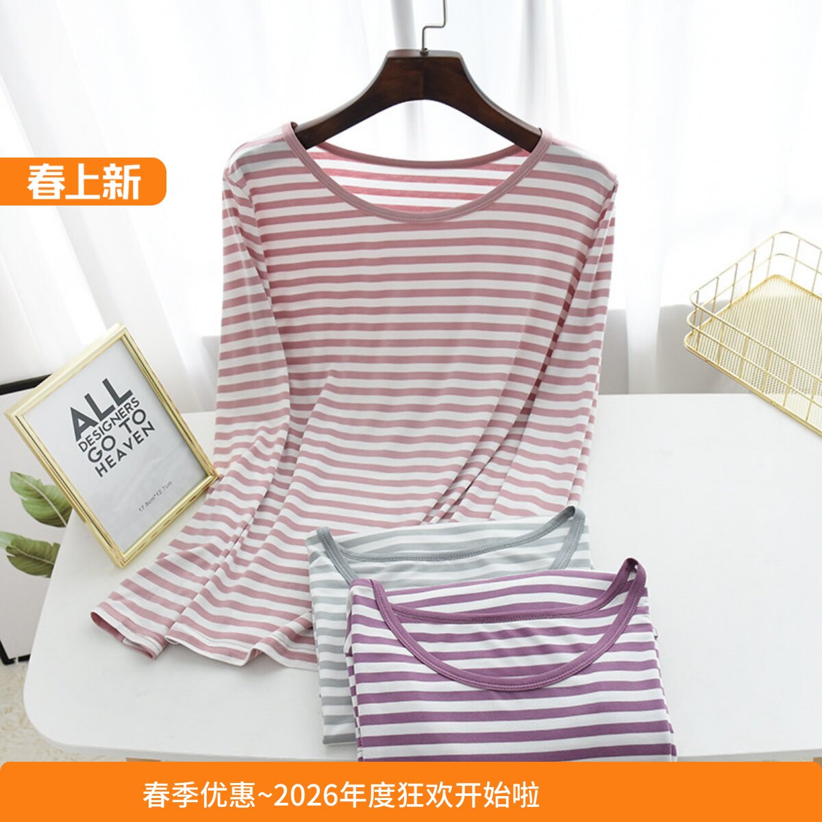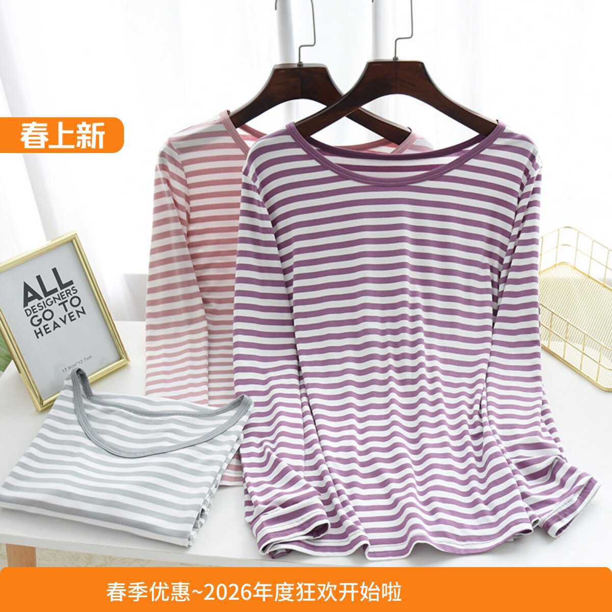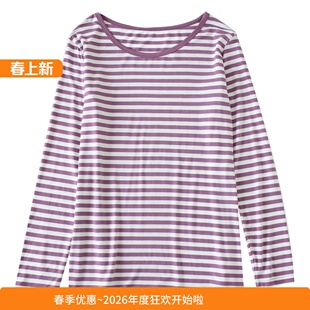 薄款 夏 单件大码 打底衫 春秋休闲秋衣 长袖 莫代尔棉条纹睡衣上衣女