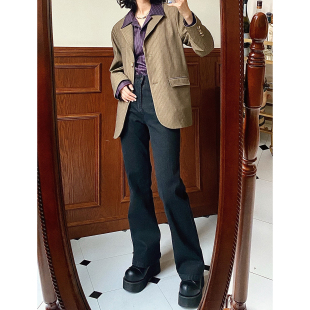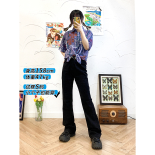黑色加绒复古显瘦小个子 」高腰高弹牛仔裤 化学少女 X2「摩登裤