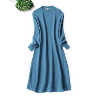 真丝长袖 A字羊绒 V领连衣裙 奢侈 针织连衣裙秋冬加厚打底裙中长款