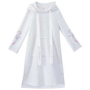 连帽刺绣连衣裙长袖 卫衣长裙2025年新款 秋冬款 打底裙子女 限量