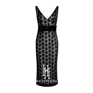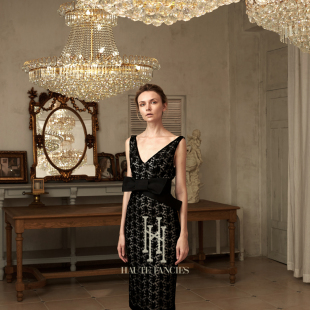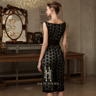 包臀腰封连衣裙 FANCIES后构想|黑色精工蕾丝修身 海鸥领 HAUTE