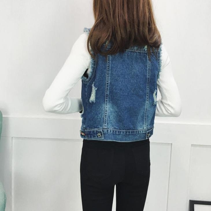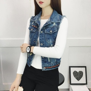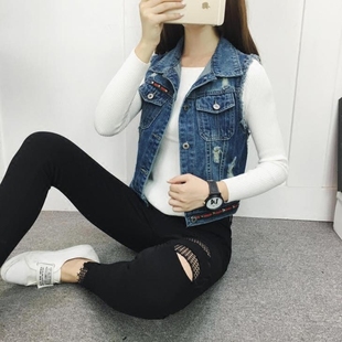 新品 铆钉短款 宽松加大码 修身 贴布牛仔马甲外套 女装 夏装