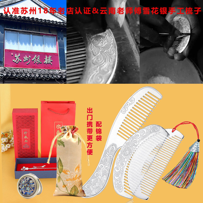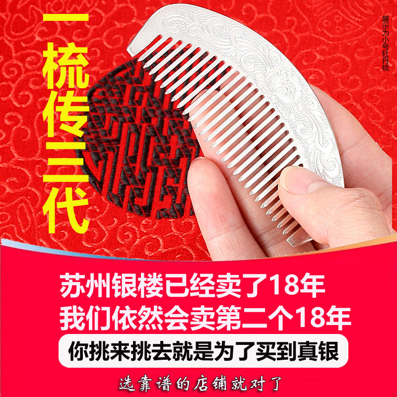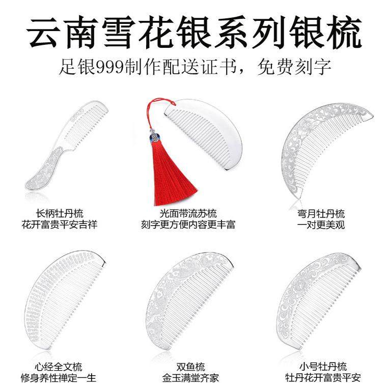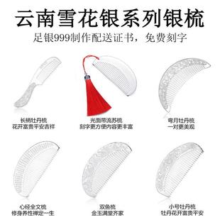 银梳子大小号国潮雪花银足银999纯银手工保健刮痧发梳送女友礼物