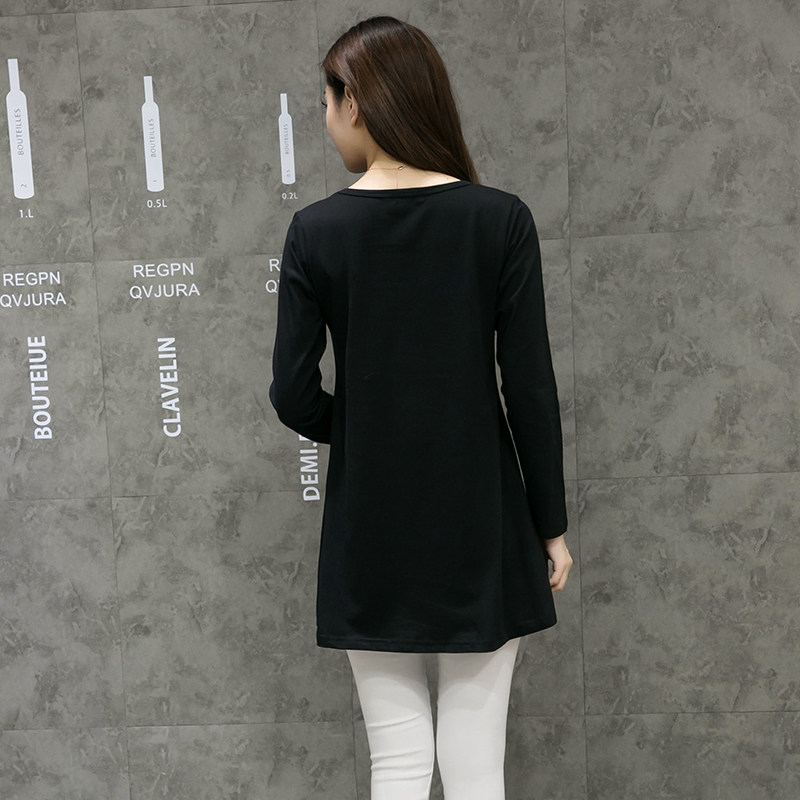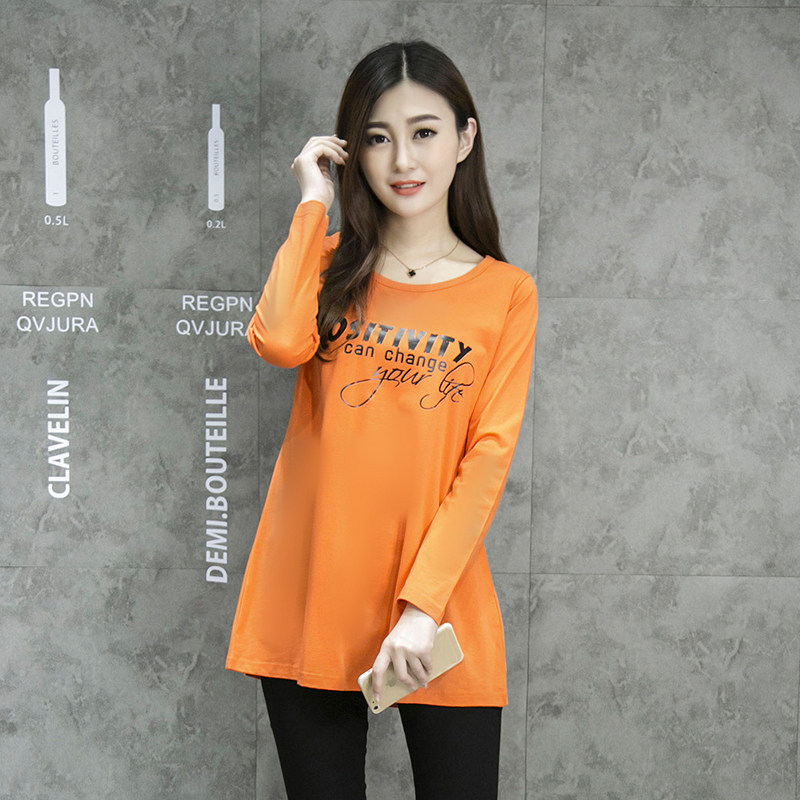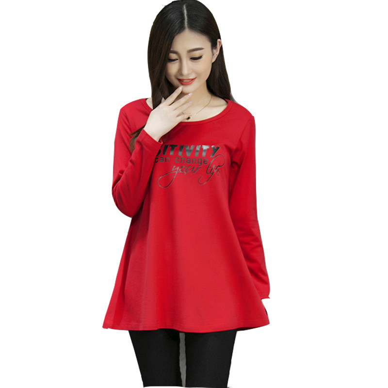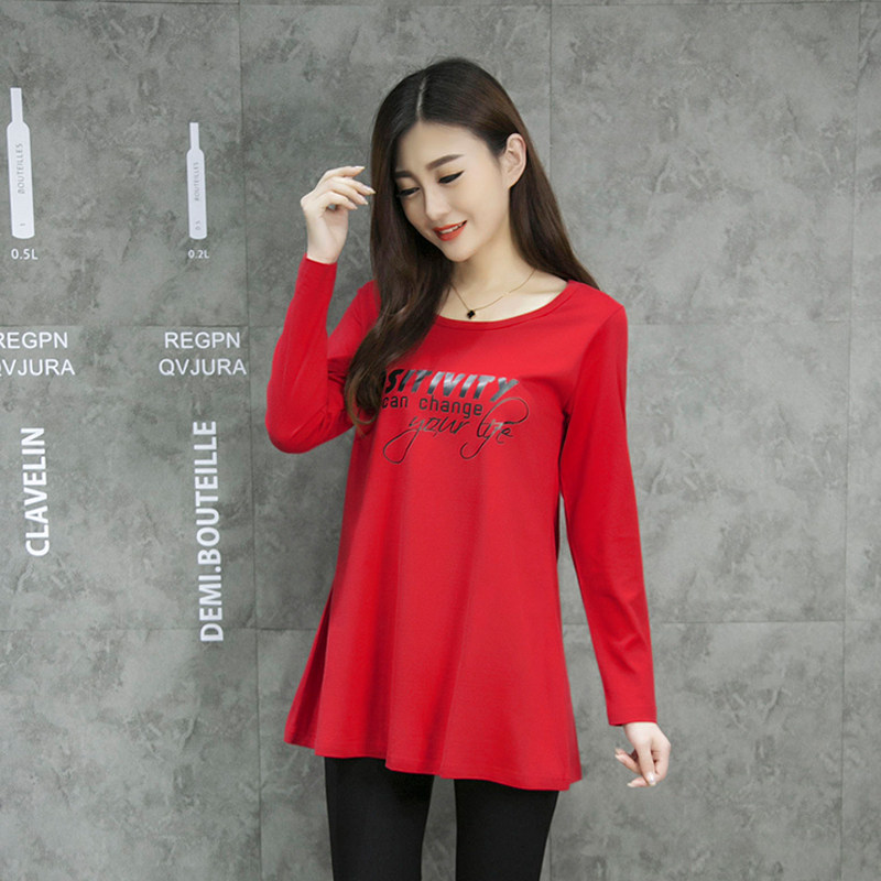 显瘦打底衫 纯棉长袖 胖mm宽松A字中长款 潮秋大码 印花t恤女上衣新款