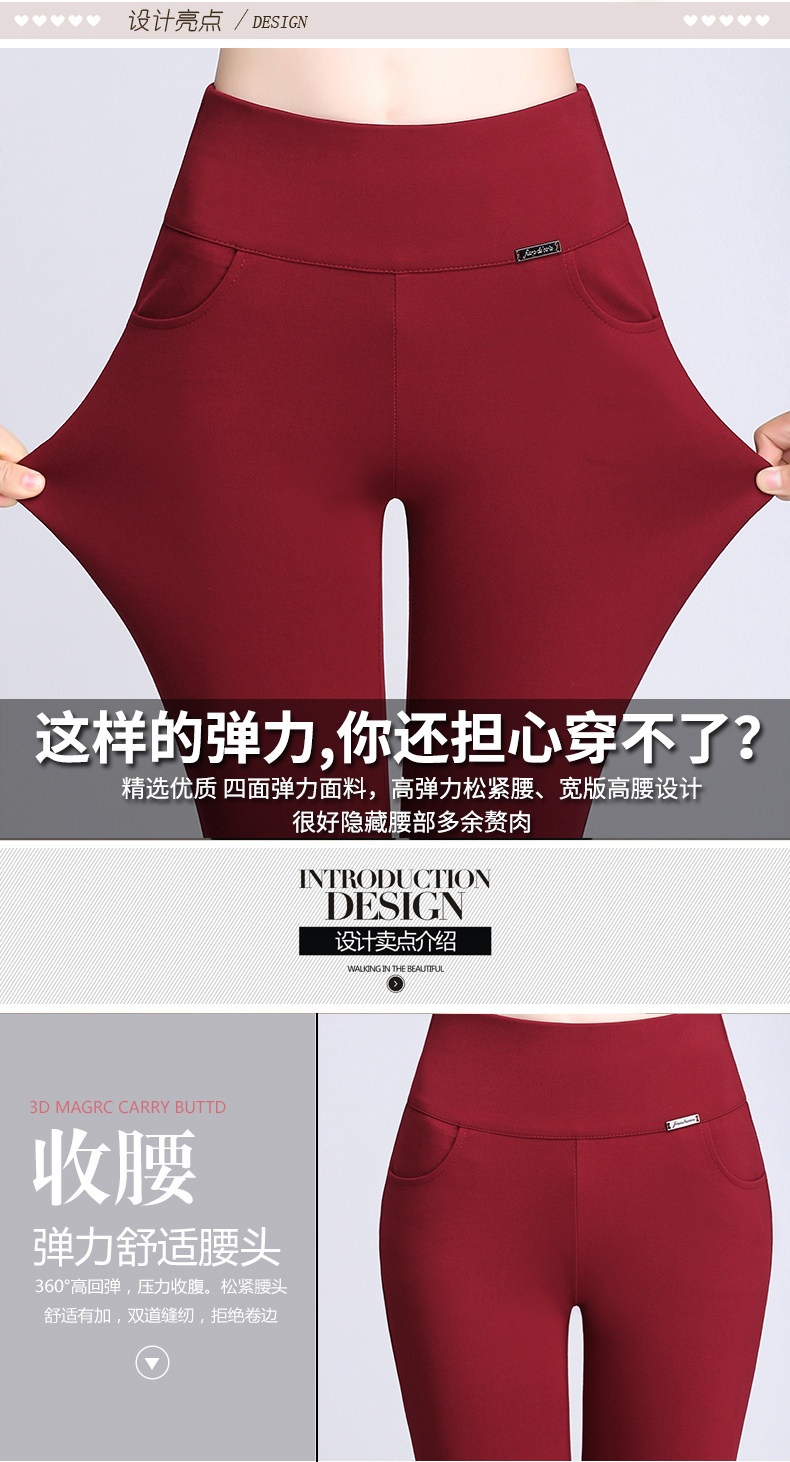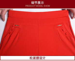 子女春秋薄款 女裤 宽松韩版 黑色显瘦高腰松紧腰大码 九分裤 中老年裤