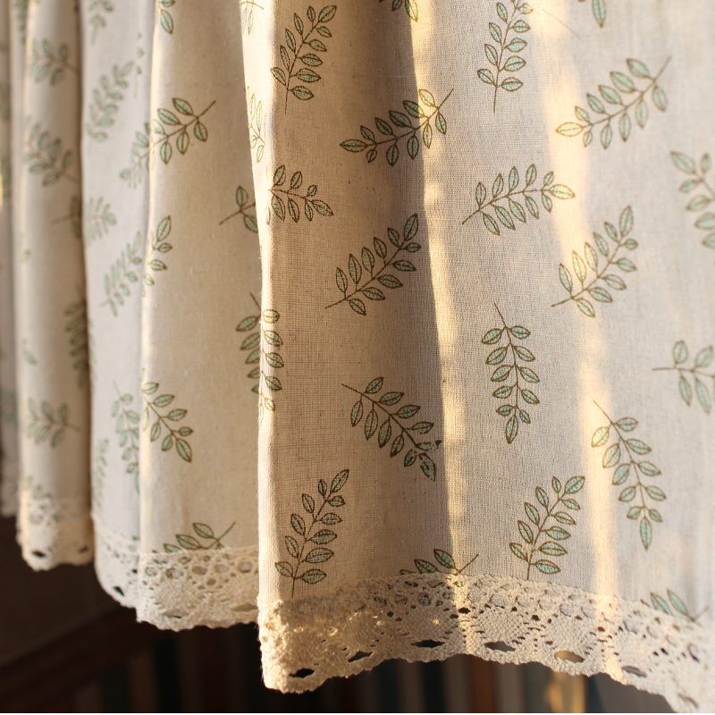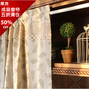 地中海北欧半帘门帘小窗帘穿杆帘风水帘 绿叶棉麻美式 尾货清仓