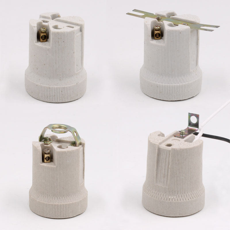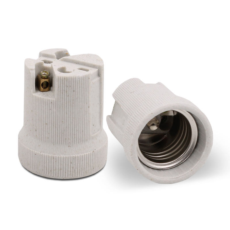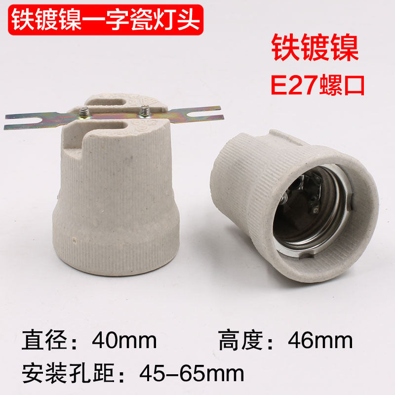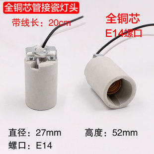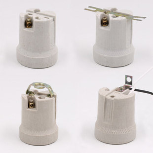 陶瓷灯头E27螺口耐高温防水灯座纯铜平灯头E14加厚接线E40吊灯头