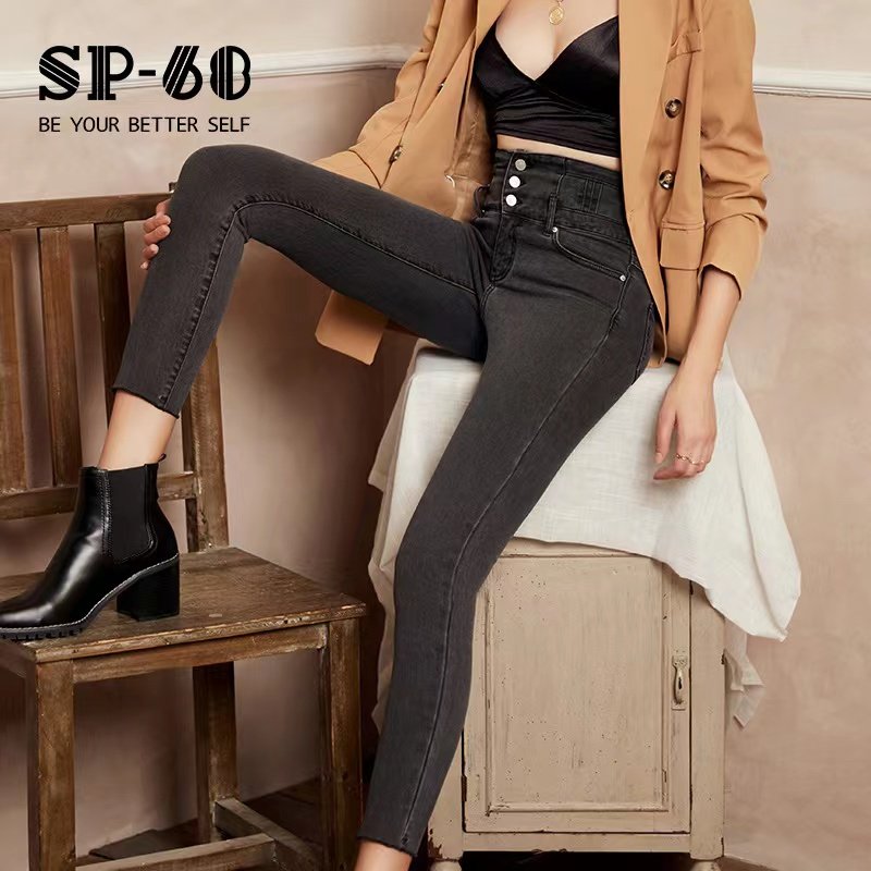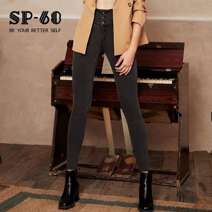 显瘦紧身加绒小脚铅笔裤 高腰薄绒修身 女2025秋冬新款 黑灰色牛仔裤