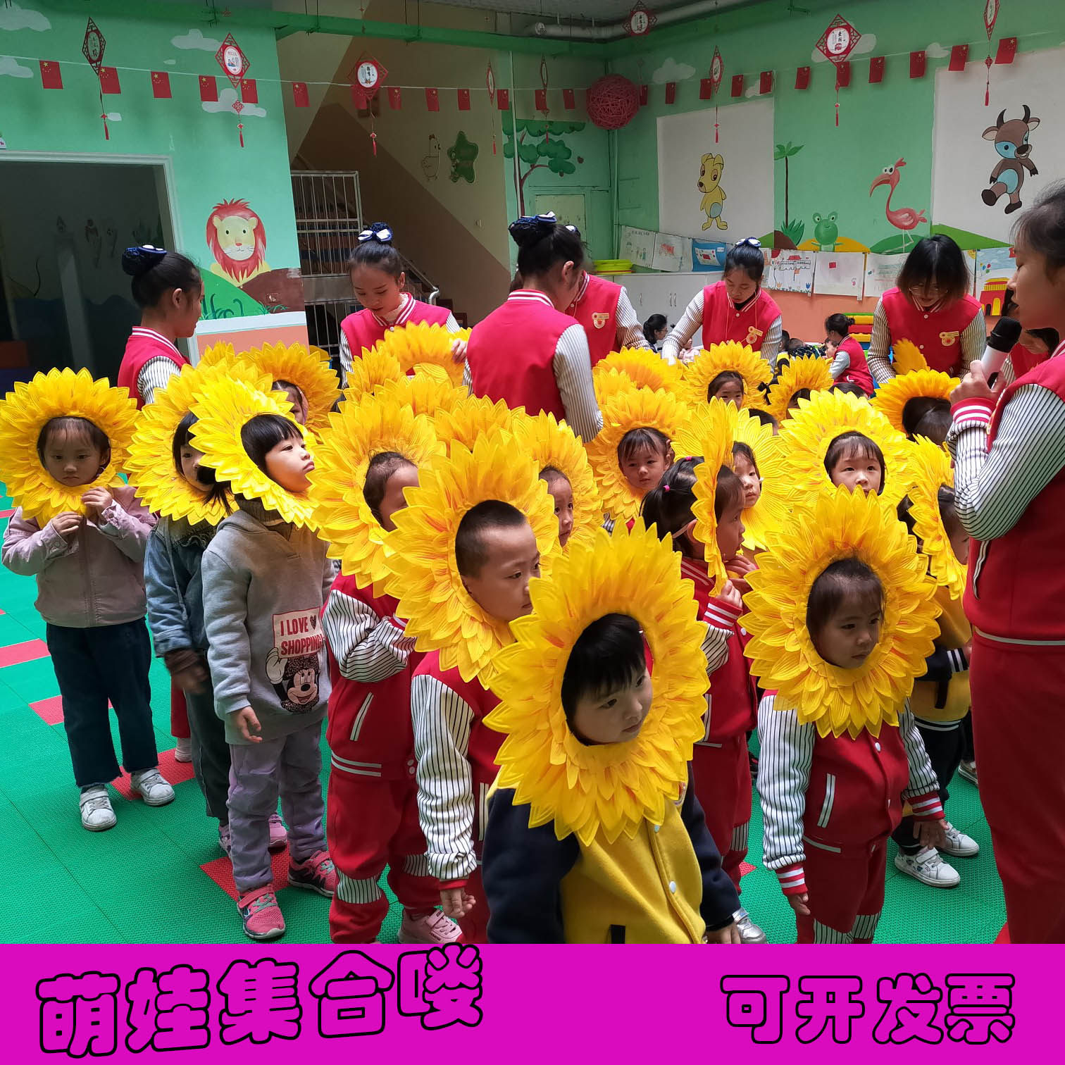 运动会开幕入场式 道具方阵头饰露脸葵花帽子向日葵头套太阳花脸套