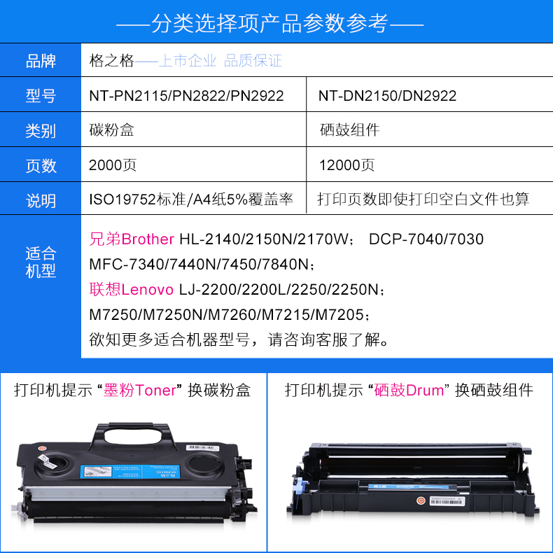 7040 DCP7030 格之格适用兄弟TN2115粉盒 7045 7840W 2170W 7440N 2140 7450硒鼓 2150N墨盒 MFC7340 7032