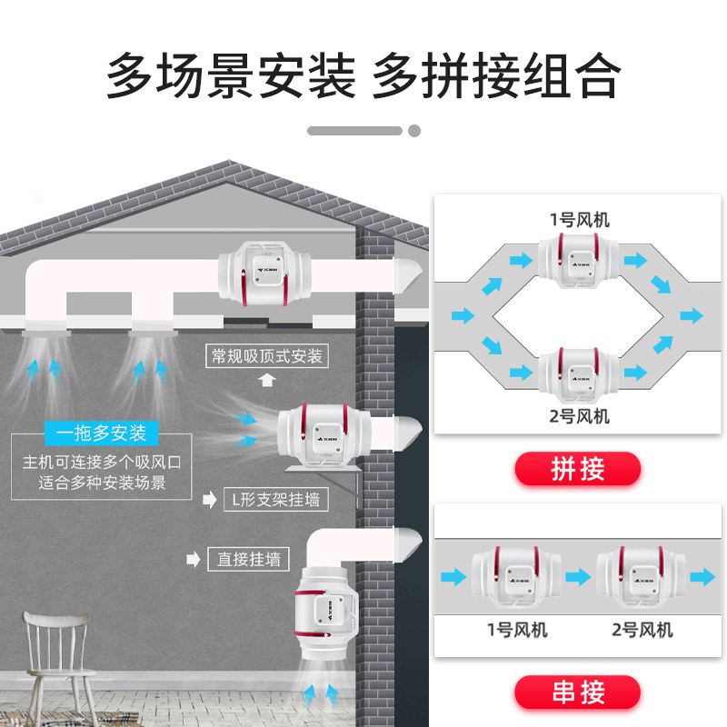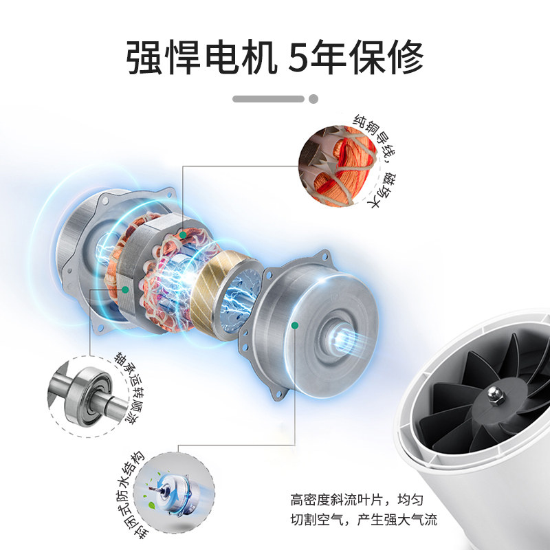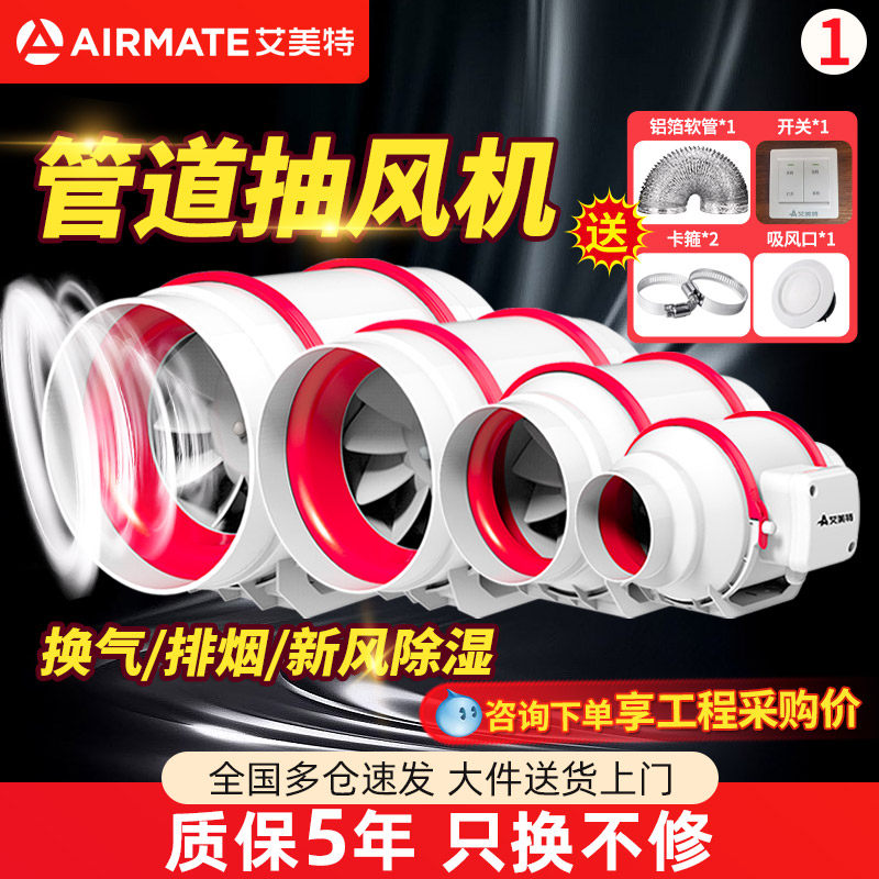 艾美特管道风机抽排气扇家用强力低音商用工业换气排风110增压160