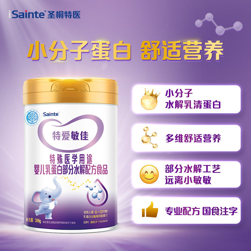 优博敏佳特爱适度水解奶粉特医配方婴幼儿过敏乳蛋白部分水解300g