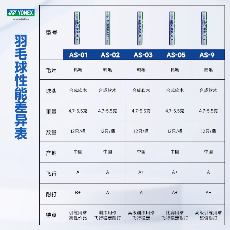 官方正品 耐打王稳定AS15鹅毛球 YONEX尤尼克斯羽毛球AS05球12只装