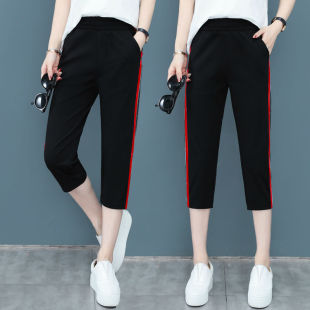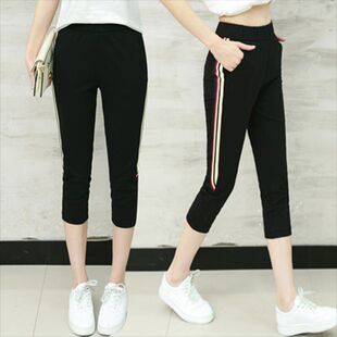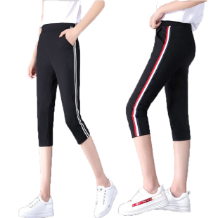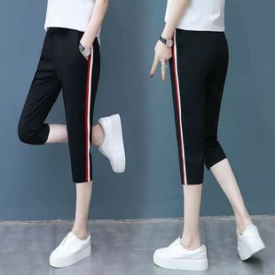2019新款 夏季 马裤 运动韩版 七分裤 百搭黑色显瘦休闲中裤 女宽松薄款