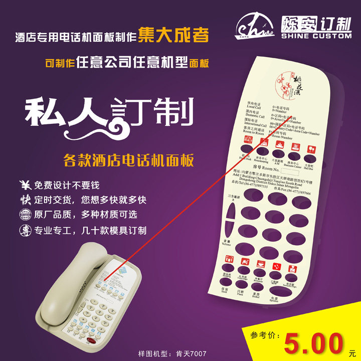 电话机面板免费设计定制比特肯特等酒店电话机面板卡纸PVC亚克力
