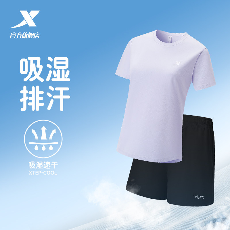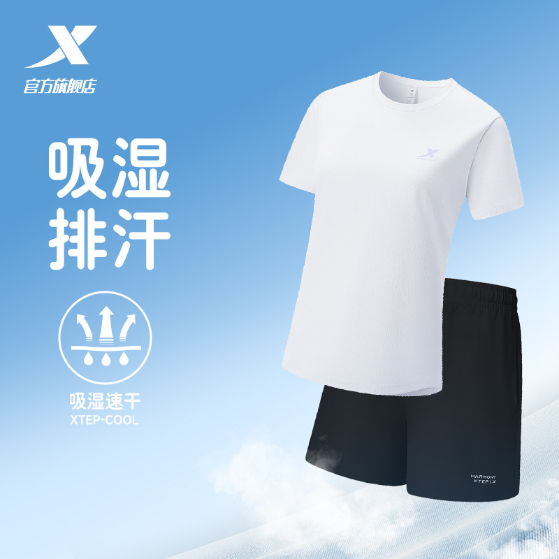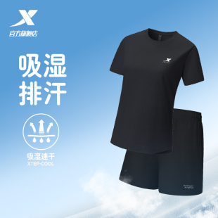 短裤 透气T恤短袖 跑步体测训练服 女运动两件套夏季 特步速干套装