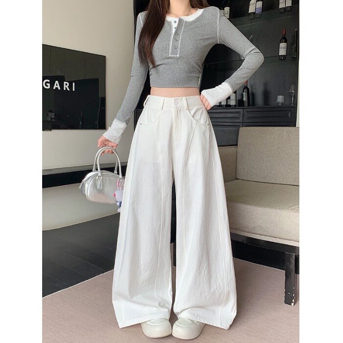 新款 2026春季 遮胯阔腿裤 弯刀裤 小吉家大码 宽松显瘦松弛感长裤 女装