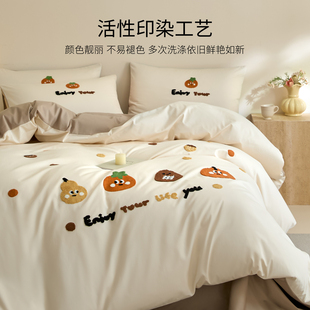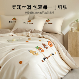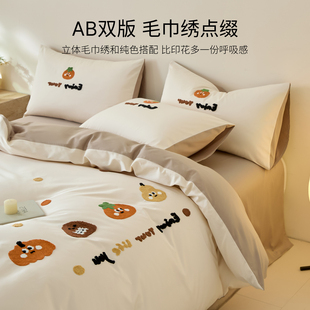 100S贡缎长绒棉毛巾绣床上四件套纯棉全棉磨毛床笠款 床品被套床单