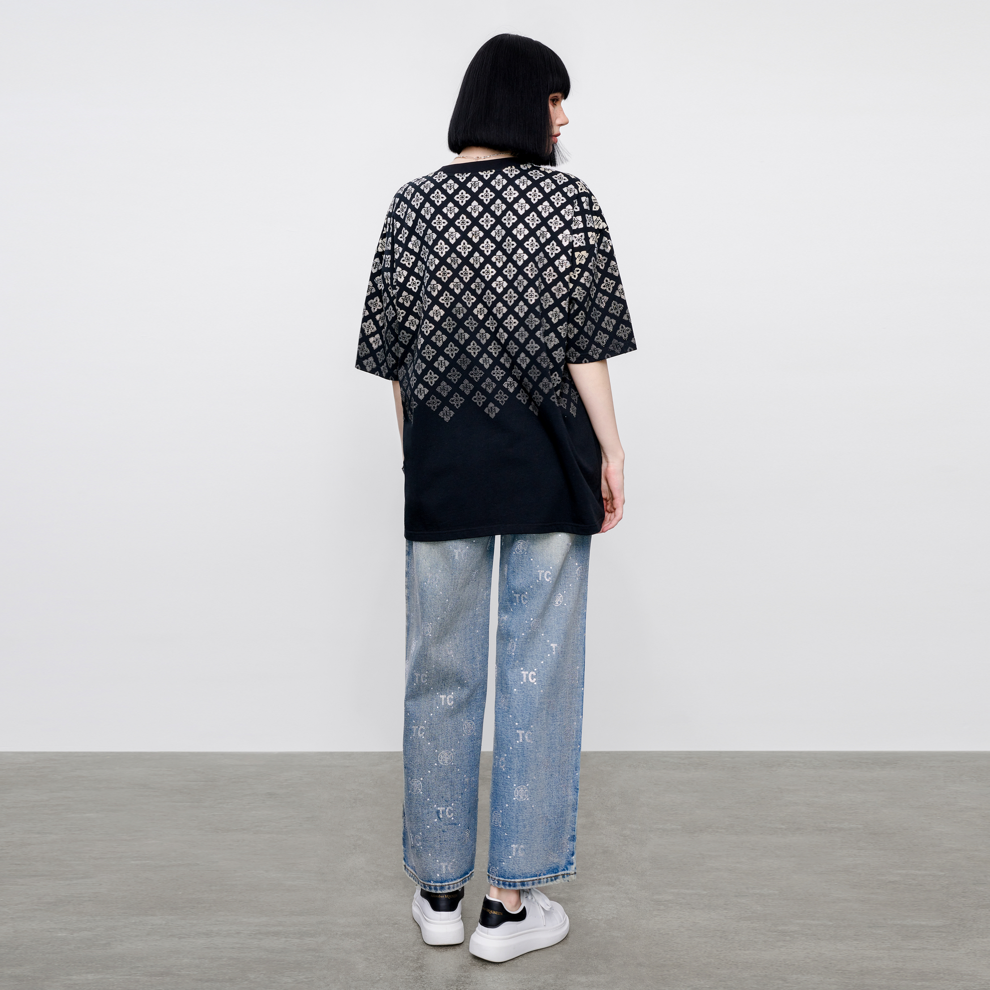 新款 TCH街头潮流烫钻休闲时尚 夏季 T恤男女同款 宽松凉感短袖
