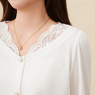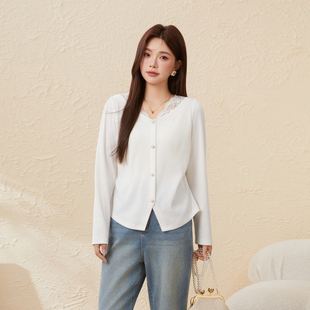 V领蕾丝气质宽松白色T恤胖妹妹巨好看轻熟上衣 韩式 采多宝大码 女装