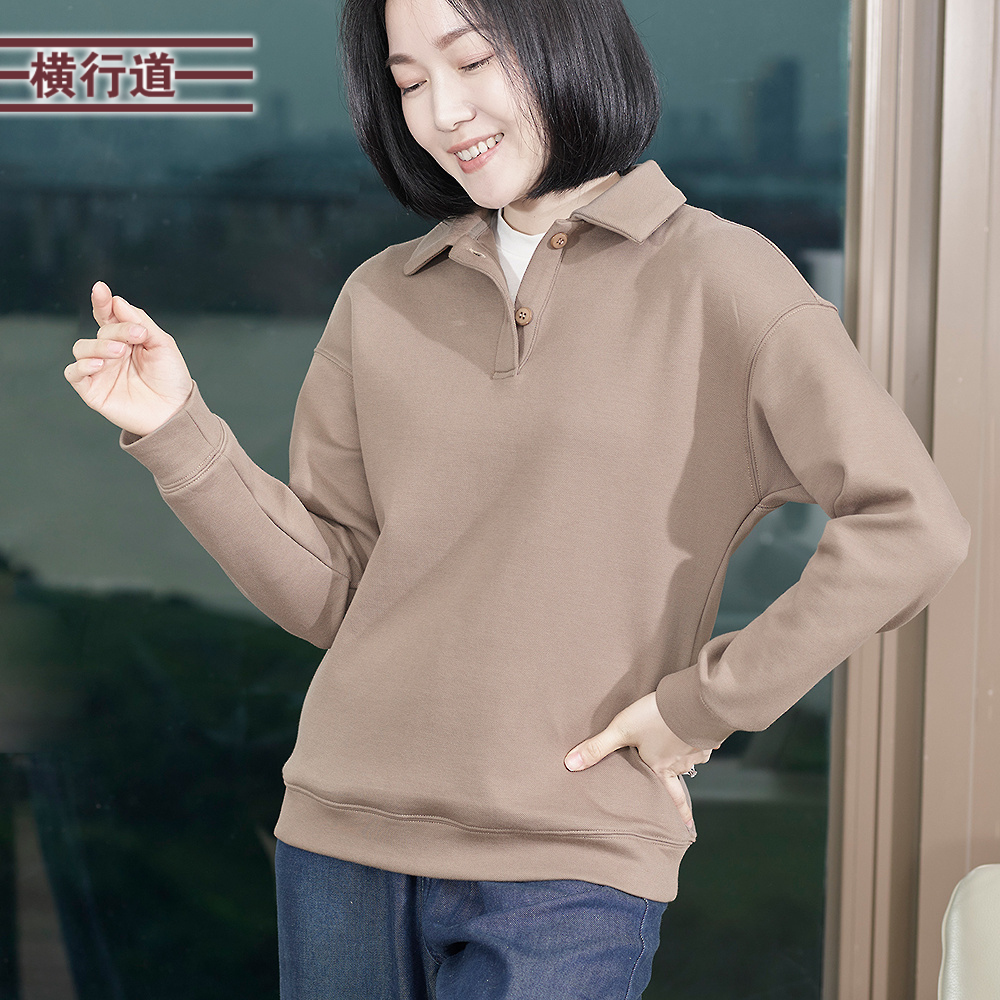 女装 简约外穿小衫 休闲宽松纯色套头翻领卫衣长袖 上衣韩版 秋季 大码