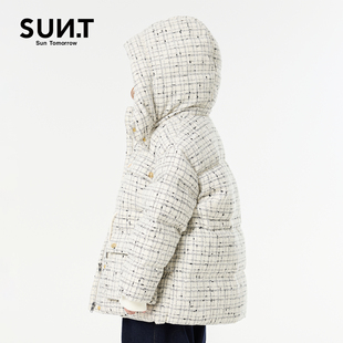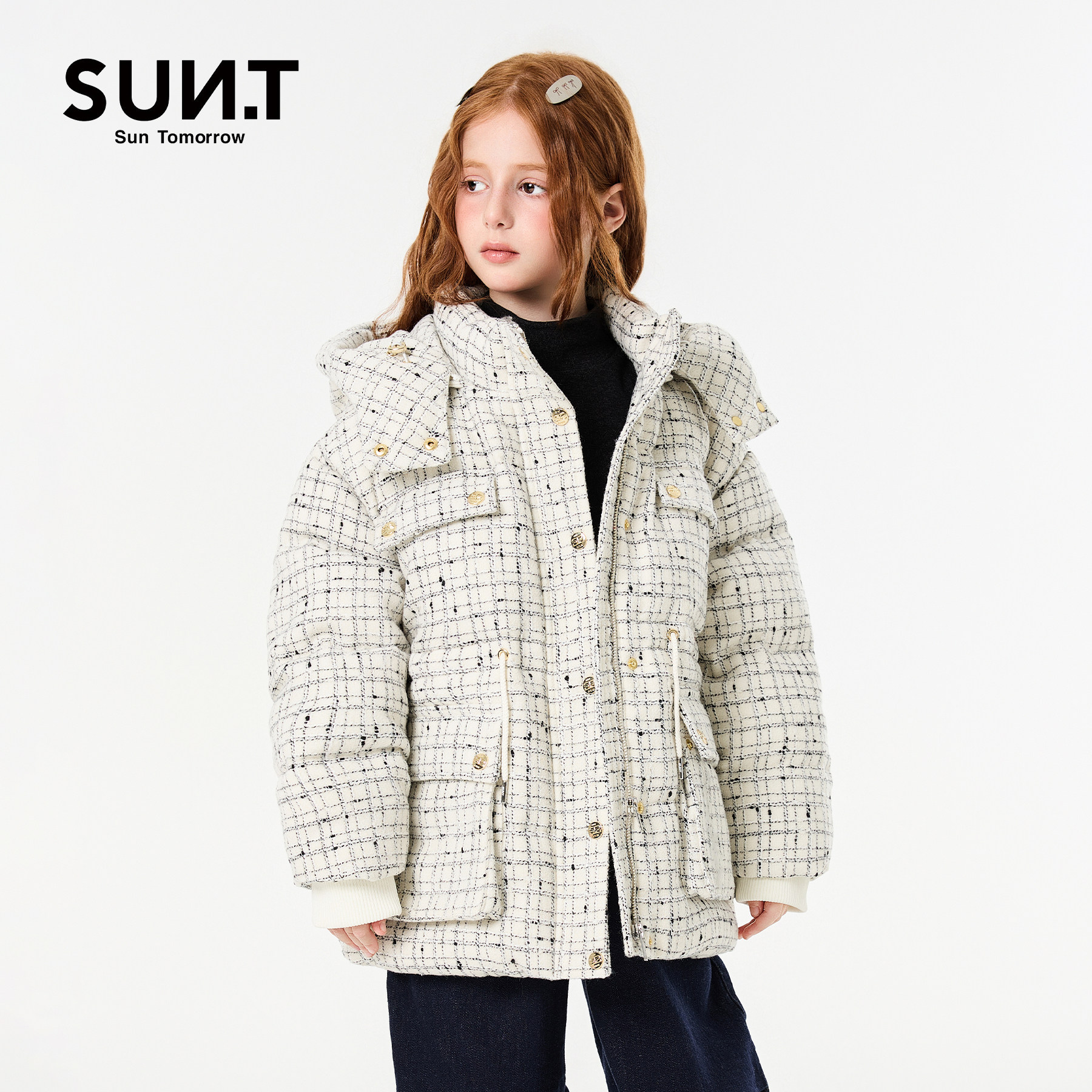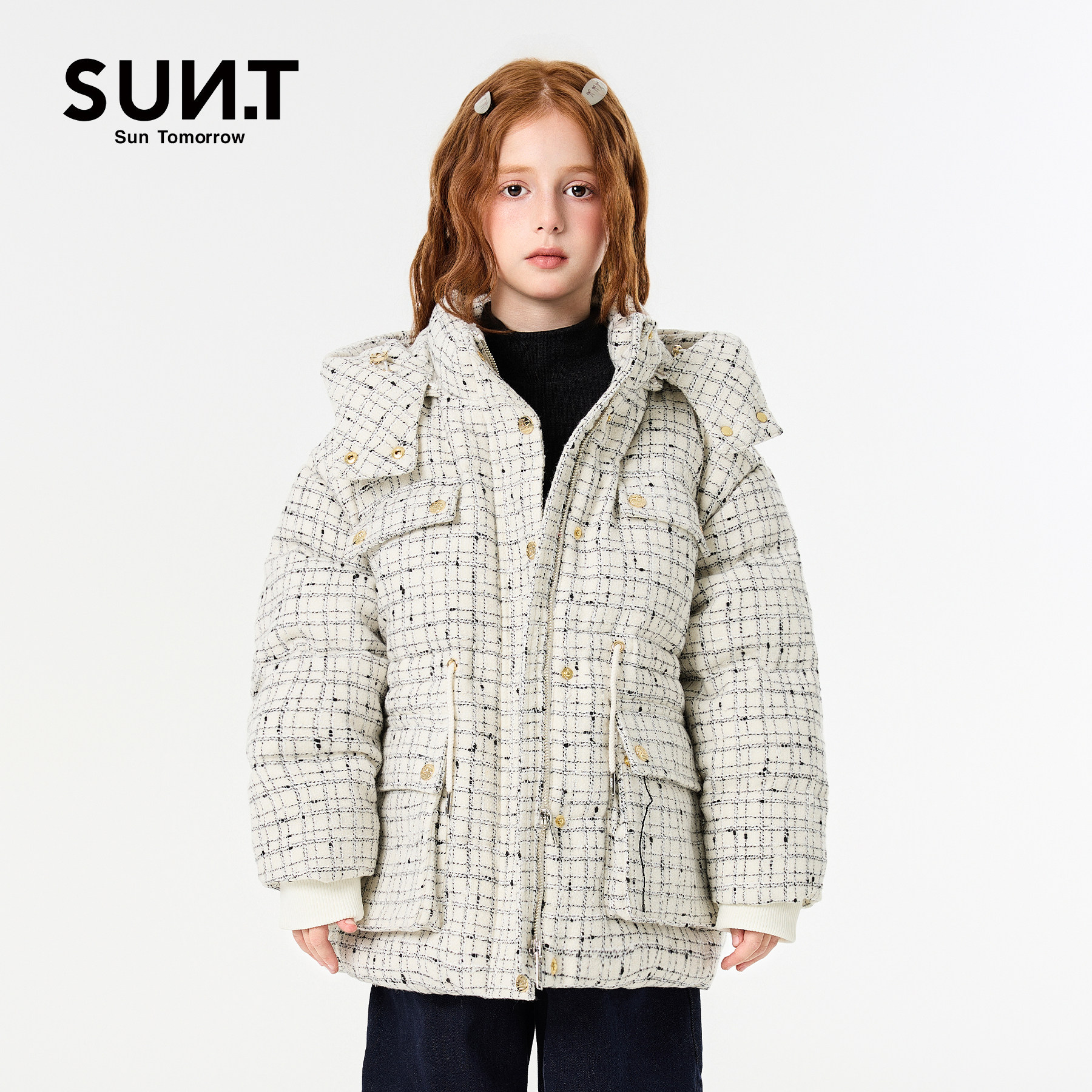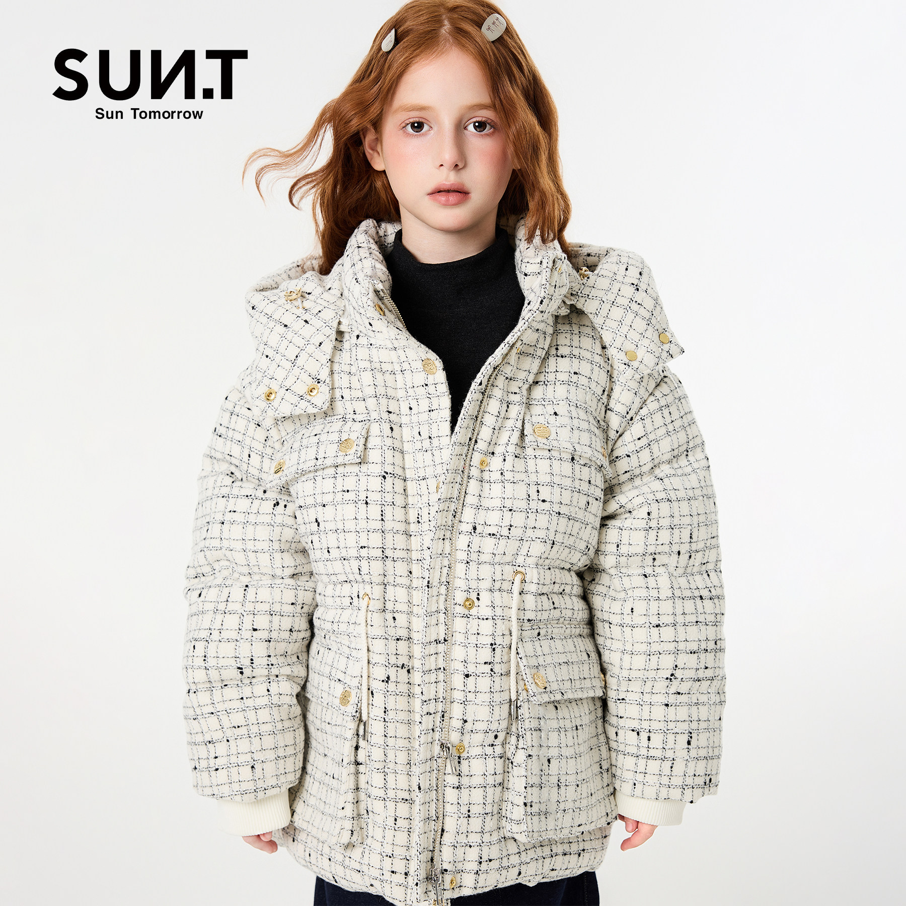 suntomorrow儿童羽绒服2025冬装 男女童大童加厚千鸟格外套潮 新款
