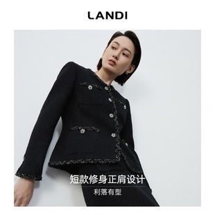 LANDI绵羊毛金葱小香风圆领短外套女套裙秋冬新品 重工肌理