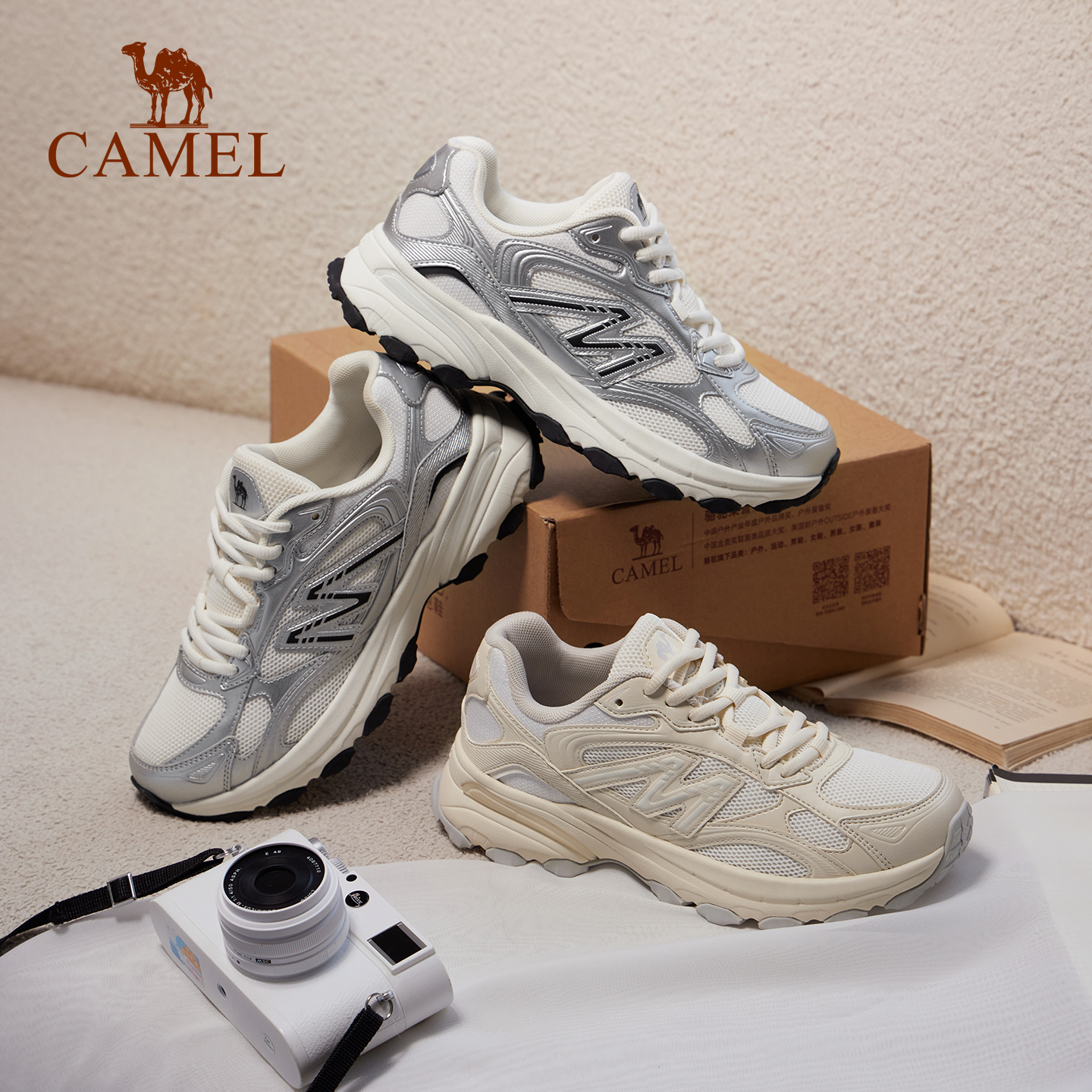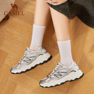 软底轻便透气运动鞋 银色防滑休闲鞋 女2025新款 骆驼光波复古慢跑鞋