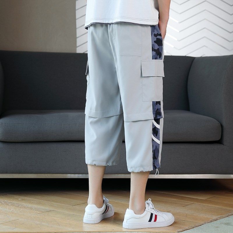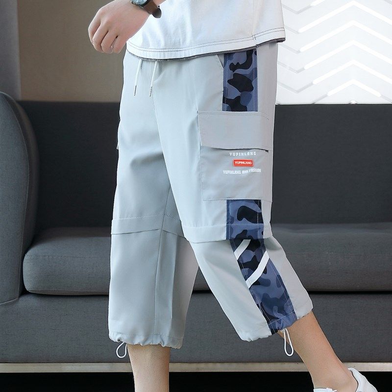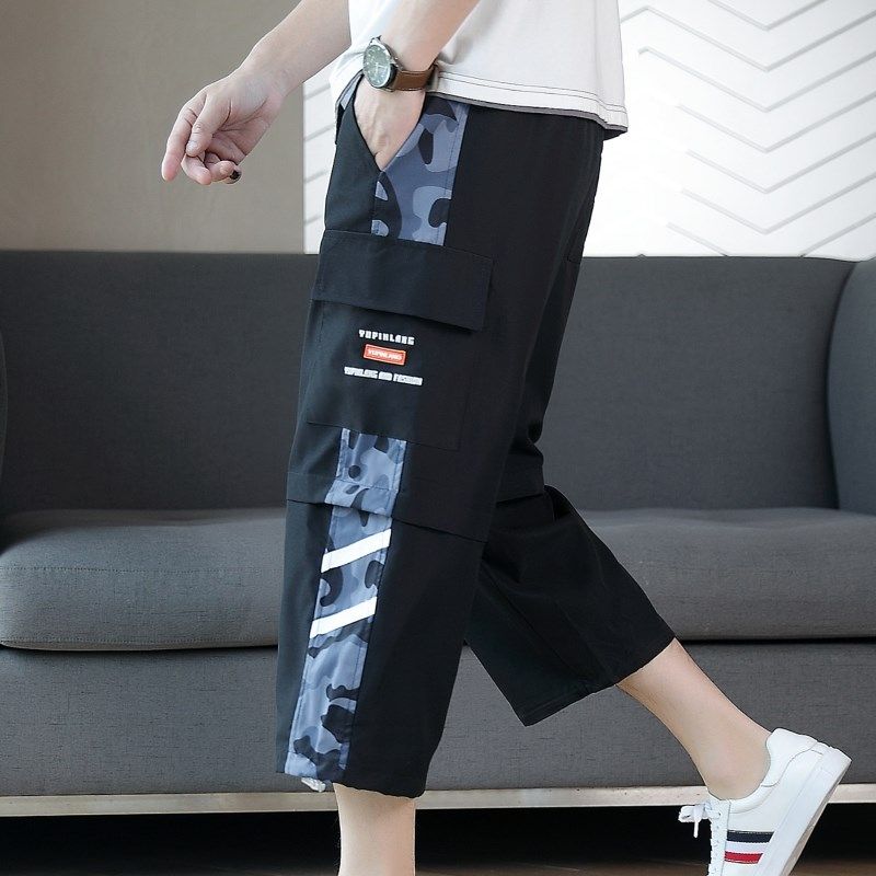 直筒八分过膝休闲七分裤 男速干运动宽松男生C潮牌工装 7分短裤 薄款
